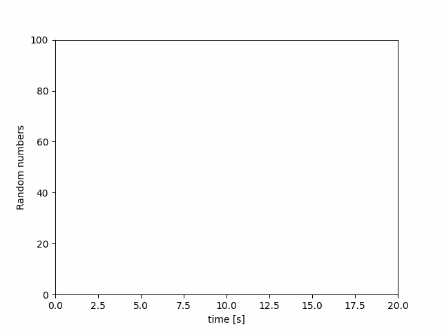 8. 本日の最後の取り組みはリアルタイムでグラフを表示するものです.データ計測においては必須の機能ということになります.while 文の中で乱数を発生させ,その都度グラフに描画するということを試してみましょう.matplotlib の animation 機能を使用します.