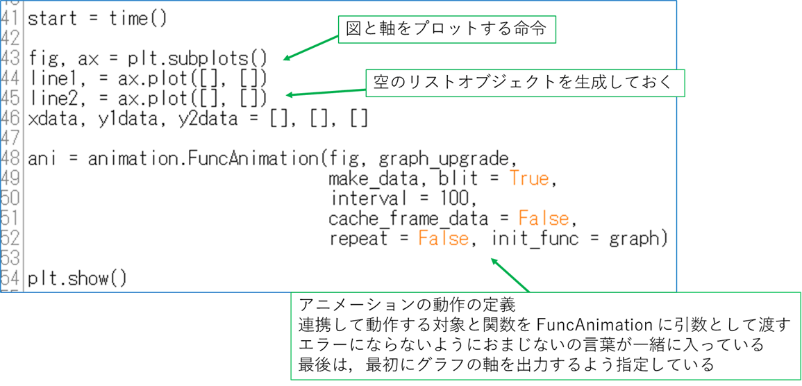 2. matplotlib では最初にグラフの枠組みとなる描画領域などのオブジェクトを生成し,続いてオブジェクトの要素であるグラフの線や凡例などを追加していくという仕組みになっています.