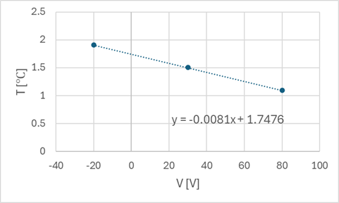 8. 使用する温度センサの S-8100B というトランジスタは添付の書類にあるように,以下の温度と電圧の関係が分かっています.