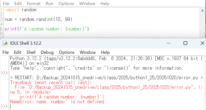 図3 5行目の print の中の f 文字列で指定している変数 number は定義されていない場合